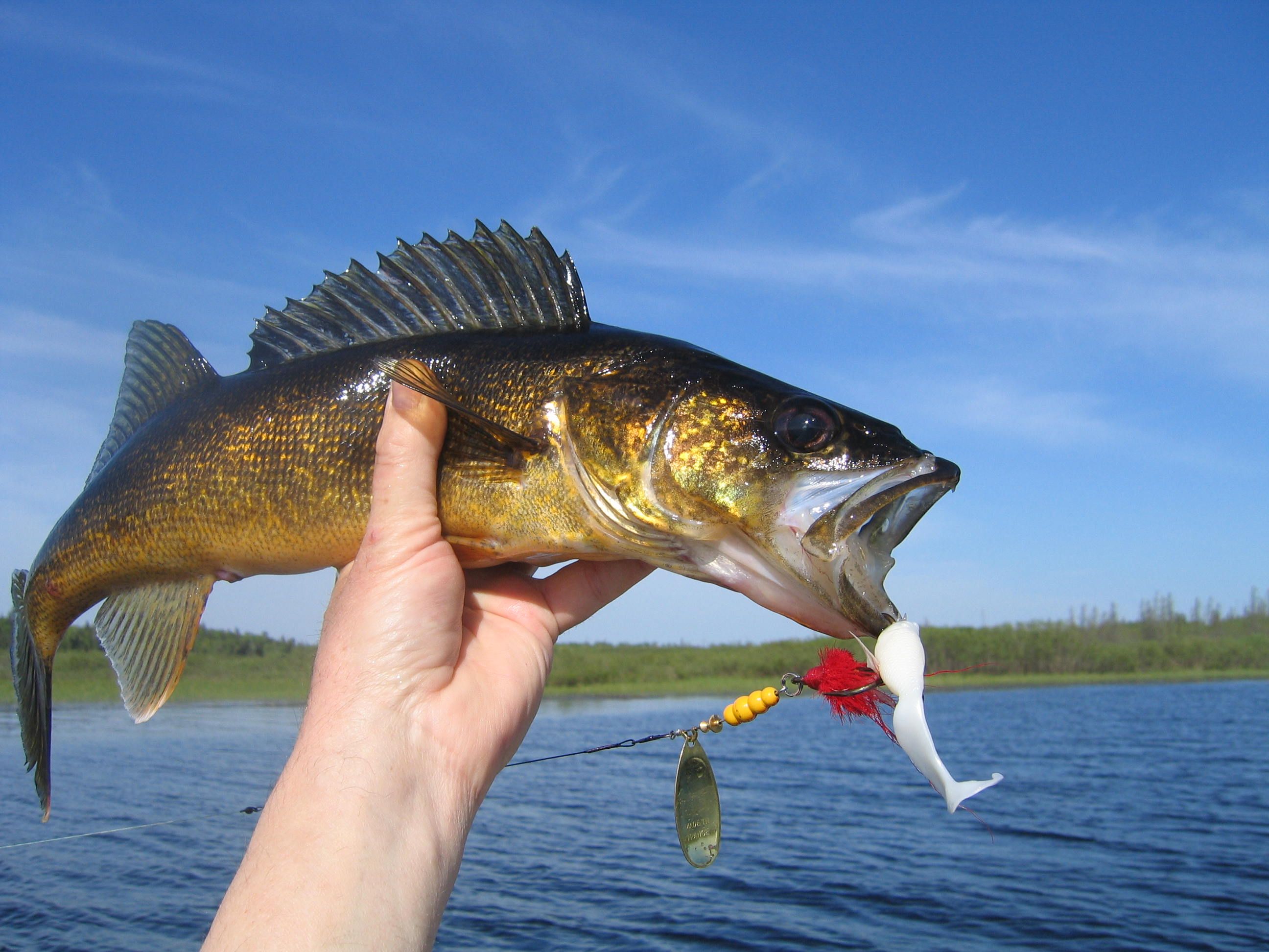 Walleye: Often called "Old Marble Eyes," these tasty predators are the pride of Manitoba. They love to hang out near drop-offs and underwater structure. Walleye fishing heats up in late spring and early summer, but you can catch them year-round. Nothing beats the thrill of feeling that telltale "thump" when a walleye hits your jig!